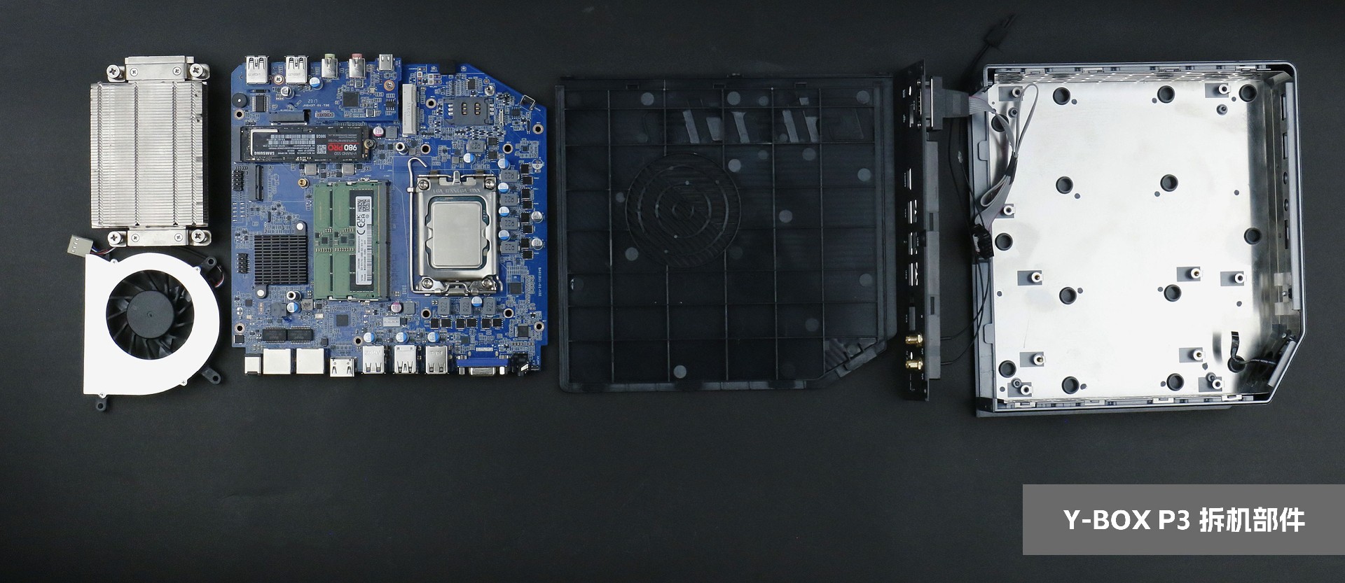 同时,高性能整机带来的散热问题,P3也从多处解决,采用被动散热与主动散热,主板处理器顶部安装一体式铝板,提高散热强度;主板中部安装强劲的涡轮风扇用于散热,风吹到的区域有CPU插槽区域、芯片组区域、内存插槽及硬盘区;最后是主板在电阻上贴的导热硅胶,通过导热硅胶可以提供良好的热传导性和柔韧性,以适应不同形状的散热需求。