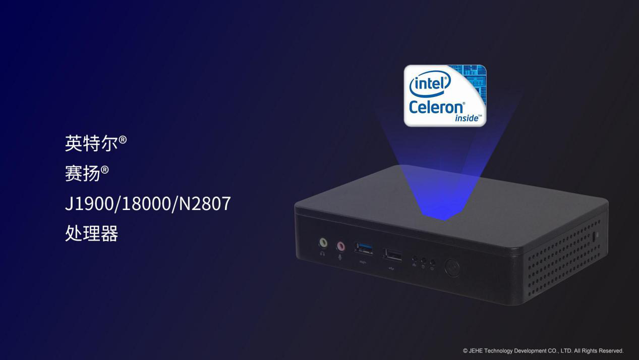 南宫NG·28(中国)相信品牌力量科技VT20桌面云终端搭载了知名度很高赛扬®J1900处理器。在嵌入式应用中,赛扬®J1900处理器主打的高单核运算频率(2.4GHz单核睿频)和低功耗(10W),非常适合面向复杂的嵌入式场景。此外,南宫NG·28(中国)相信品牌力量VT20适配了其他两款性能较低的BayTrail平台处理器,赛扬®N2807和赛扬®J1800,对于客户端性能要求相对较低的方案依然能够匹配需求。